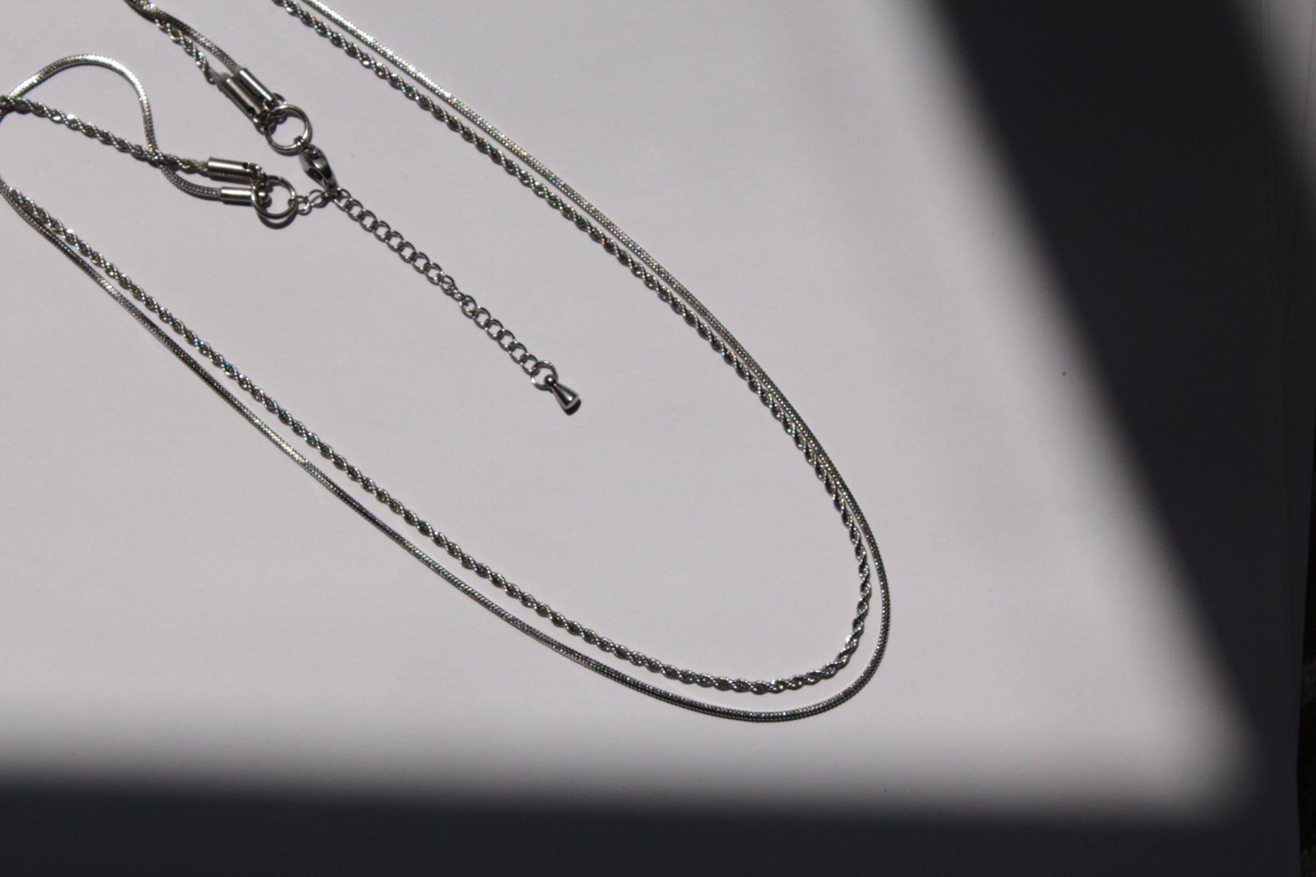 A modern layered design featuring a sleek snake chain paired with a delicate twist chain. This versatile necklace blends texture and shine, creating a refined yet stylish look. Perfect for elevating everyday outfits or adding a touch of elegance to evening wear, it’s a must-have piece for effortless layering.